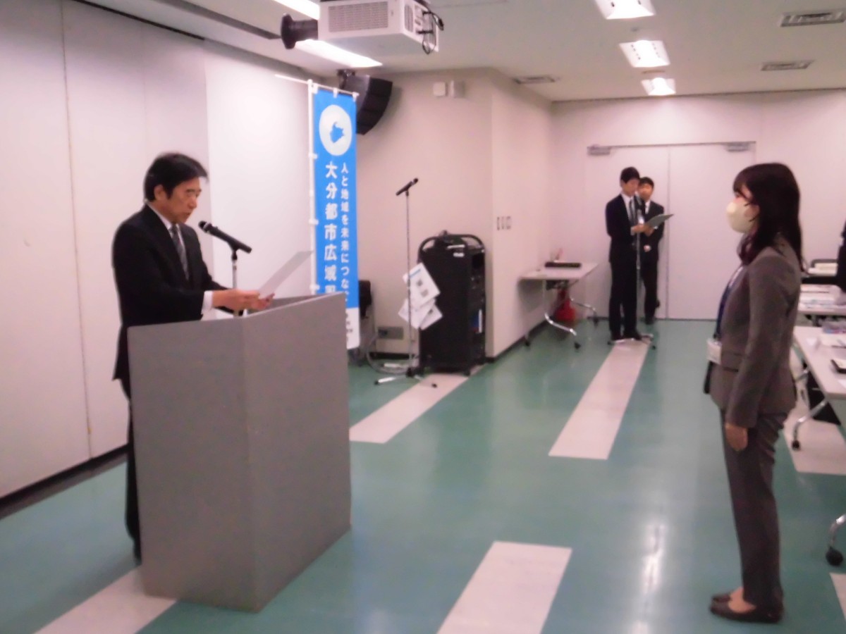 辞令を受け取る由布市の佐藤さん